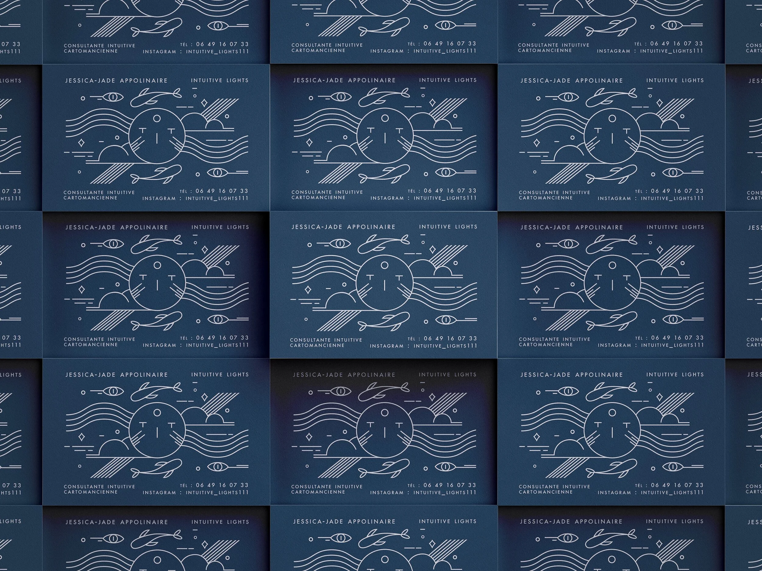 Business cards for the fortune-teller Jessica-Jade Appolinaire from Intuitive Lights.