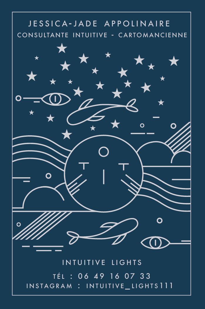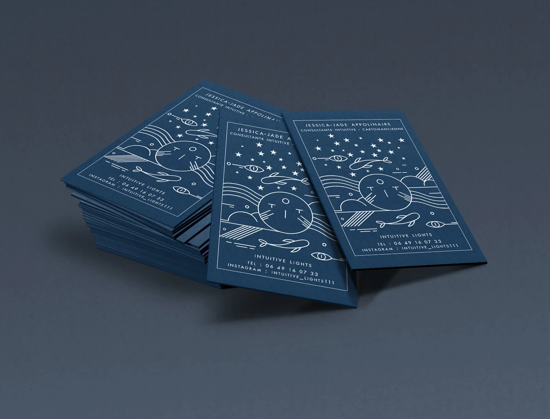 Cartes de visite pour la cartomancienne Jessica-Jade Appolinaire.